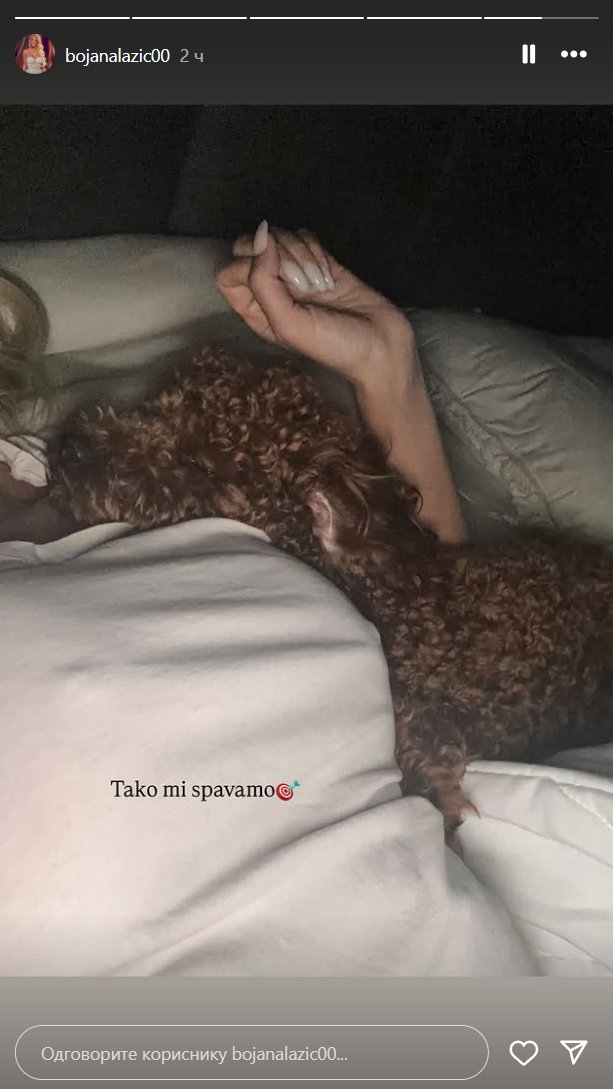 Ipak, nedavno je objavila fotografiju iz porodičnog doma i otkila ko joj tokom noći pravi društvo. Bojana je otkrila da uživa u samoći s psom, a emotivnu fotku iz kreveta podelila je sa fanovima na društvenoj mreži Instagram.