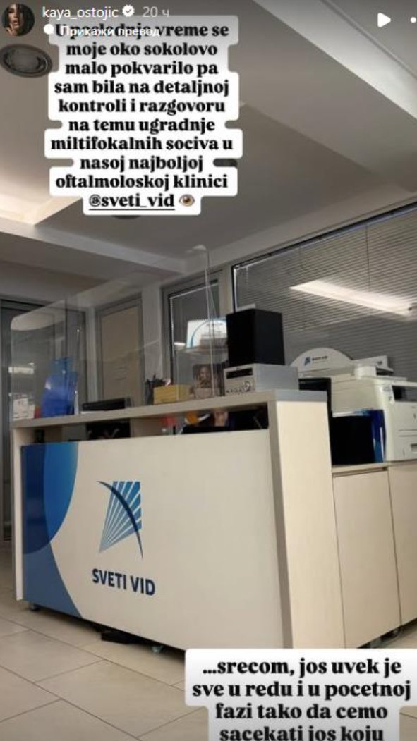 - U poslednje vreme se moje oko sokolovo malo pokvarilo, pa sam bila na detaljnoj kontroli i razgovoru na temu ugradnje multifokalnih sočiva u oftmološkoj klinici - napisala je Kaja na svom Instagramu.