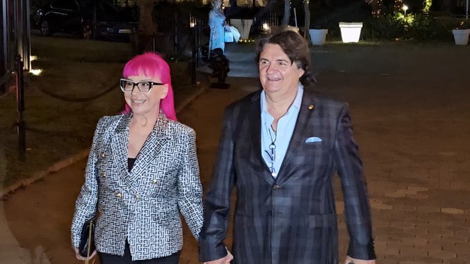 Oboje su nosili crne pantalone, međutim Kemiš ih je uklopio sa kariranim sakoom i plavom košuljom, dok je Zorica odlučila da ove noći ode korak dalje i zablista u elegantnom sakou zanimljivog dezena koji je uparila s identičnim cipelama.
