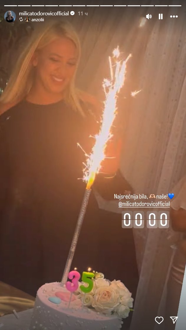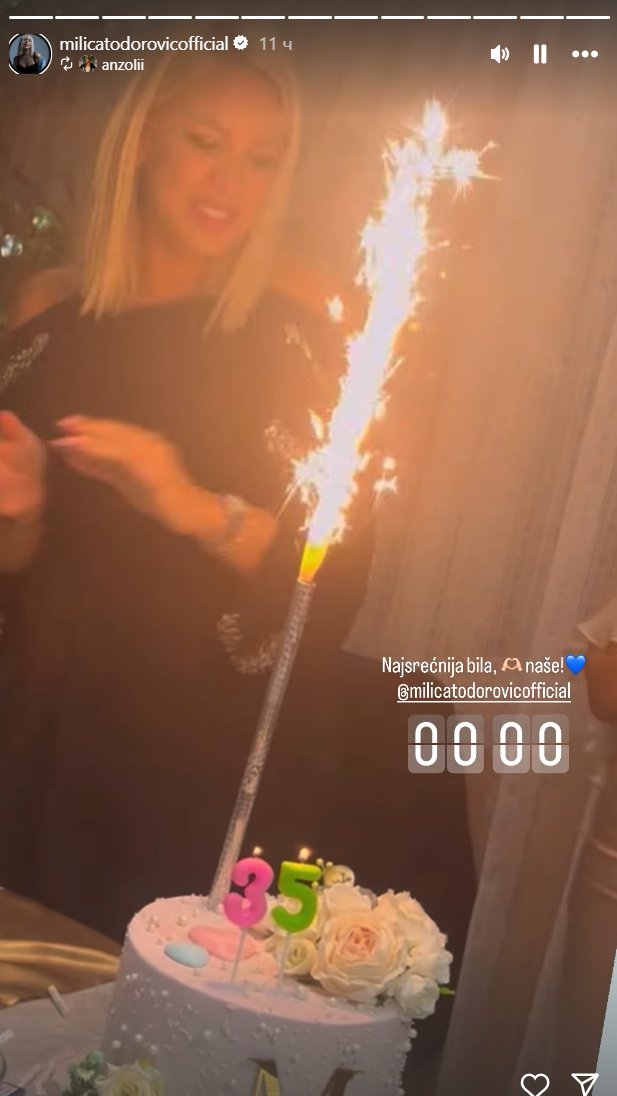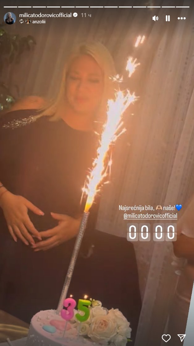 Milica je na proslavi rođendana imala ukrašenu tortu sa brojem „35“, kada je oduvala ruke je spustila na svoj trudnički stomak što je oduševilo sve.
