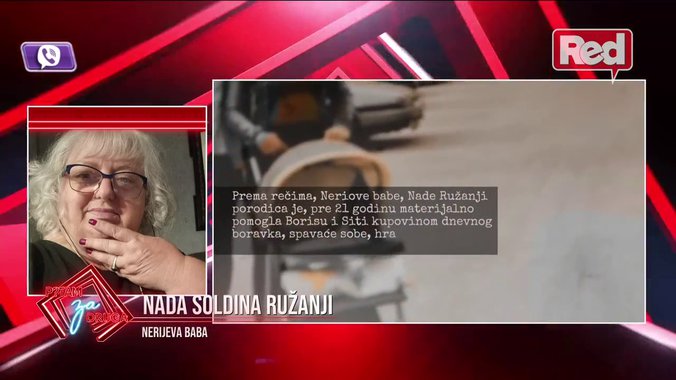 U emisiji ''Pitam za druga'' voditelji Anastasija Buđić i Stefan Milošević Panda putem audio-pozio ugostili su Nadu Soldinu Ružanji odnosno bivšu svekrvu Site Ahmić, a Neriovu baku. Nada je ove večeri pričala svoju životnu priču