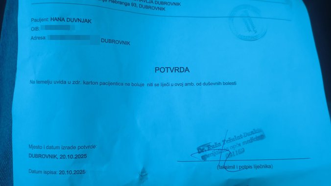 - Na temelju uvida u zdravstveni kartom pacijentkinja ne boluje niti se leči u ovoj ambulanti od duševnih bolesti -stajalo je u zvaničnoj potvrdi.