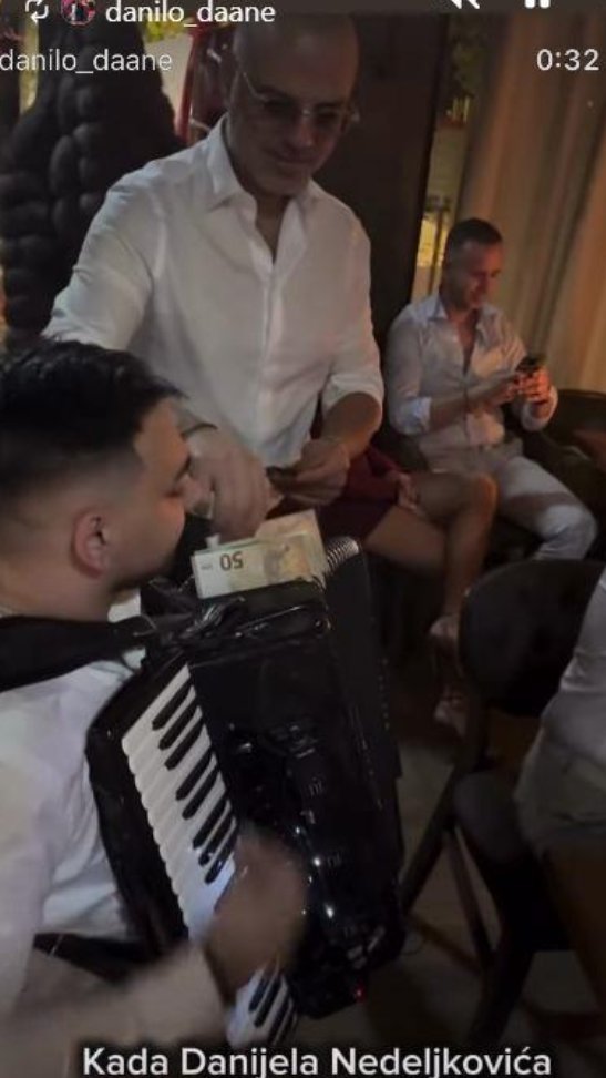 Goste je zabavljala pevačica Nadežda Biljić sa svojim bendom i doveli su atmosferu do usijanja da su Ana i Katarina zajedno zagrljene plesale, dok ih je Lazić snimao. Suprug voditeljke je bio posebno raspoložen. Muzičarima je delio bakšiš kapom i šakom, a kad je Darko uzeo mikrofon i zapevao "Srno moja malena" od Šabana Šaulića, redao je na harmonici evre od 50, 100 i 200 evra, da se za manje od 20 sekundi nakupilo oko 1.500 evra bakšiša.