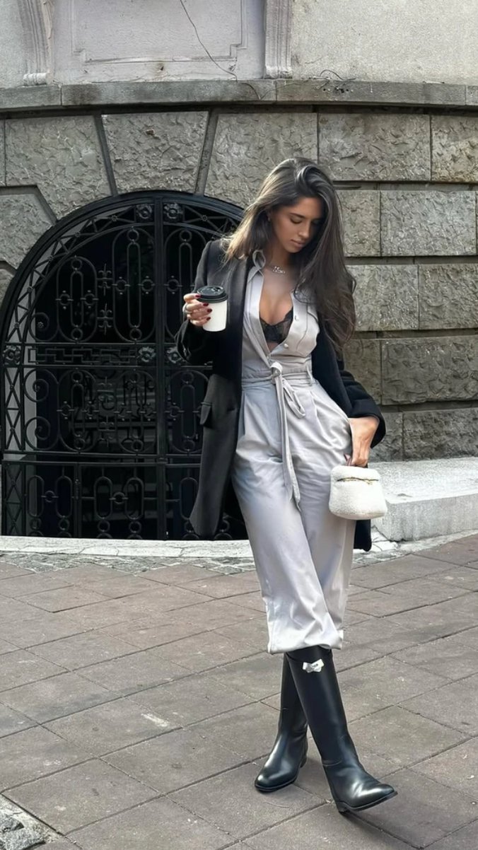Naime, kako se jasno vidi na slikama, ona je uparila crne čizme sa sakom, a ispod garderobe, kako nije bilo sve zakopčano do kraja, jasno se video crni čipkasti brushalter.