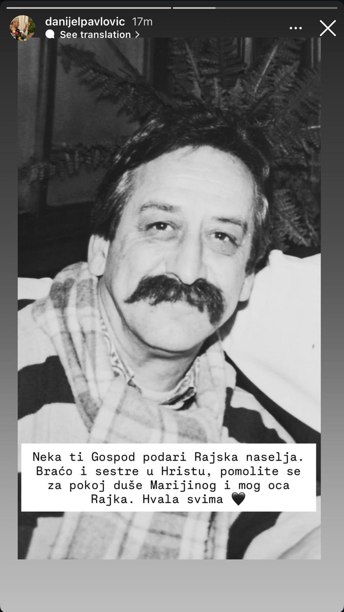 - Neka ti Gospod podari Rajska naselja. Braćo i sestre u Hristu, pomolite se za pokoj duše Marijinog i mog oca Rajka. Hvala svima - napisao je Danijel Pavlović.