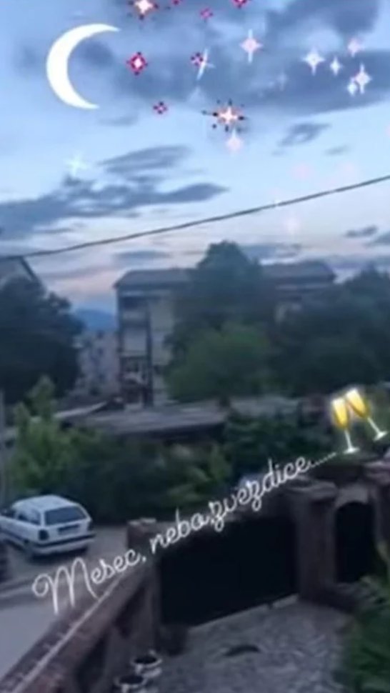 Na kadrovima ogromnog balkona pevačica je napisala deo svoje pesme "Mesec, nebo, zvezdice...".