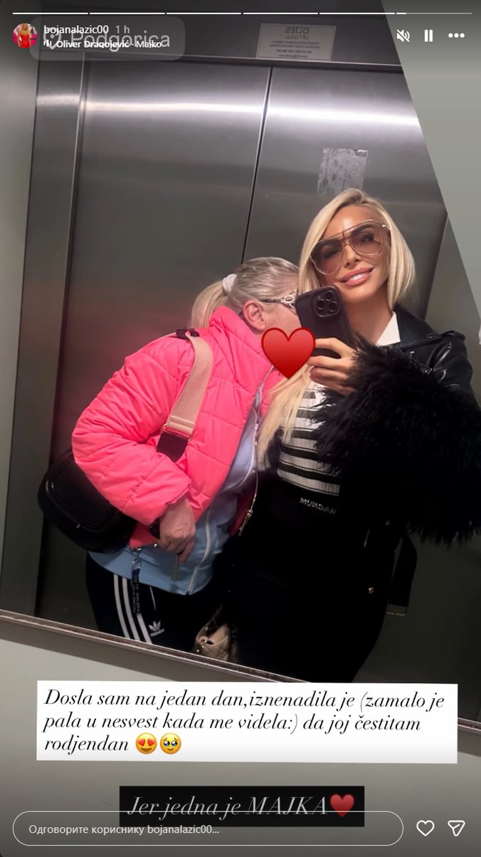 Bojana je sada podelila sliku sa majkom iz lifta, pa napisala sledeće: