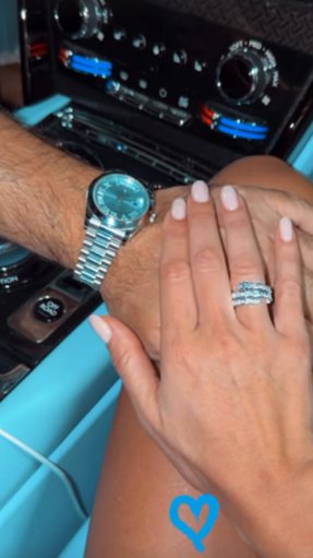 Ona je svog dečka milionera dugo krila od očiju javnosti, ali sada sve češće objavljuje slike i snimke sa njim. Ovoga puta pohvalila se skupocenim prstenom koji je zasijao na njenoj ruci, ali i izlivima nežnosti koje joj dečko pokazuje dok je mazi po butini.