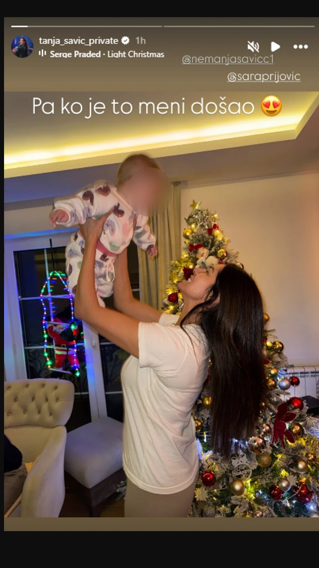 Tanja Savić objavila je večeras na svom profilu na Instagramu sliku punu emocija na kojoj pozira sa detetom svog brata. Pevačica je u svom domu ugostila brata Nemanju i snajku Saru, a sve je odisalo novogodišnjom atmosferom i toplinom.