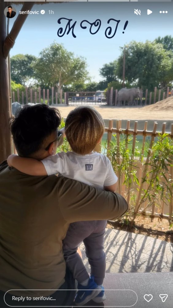 Mališan je obučen moderno i ležerno, a ceo prizor odiše toplinom i porodičnom srećom.Bez mnogo reči, ovaj kadar govori o ljubavi, miru i posebnim momentima koje Marija verno čuva samo za sebe i svoje najbliže.