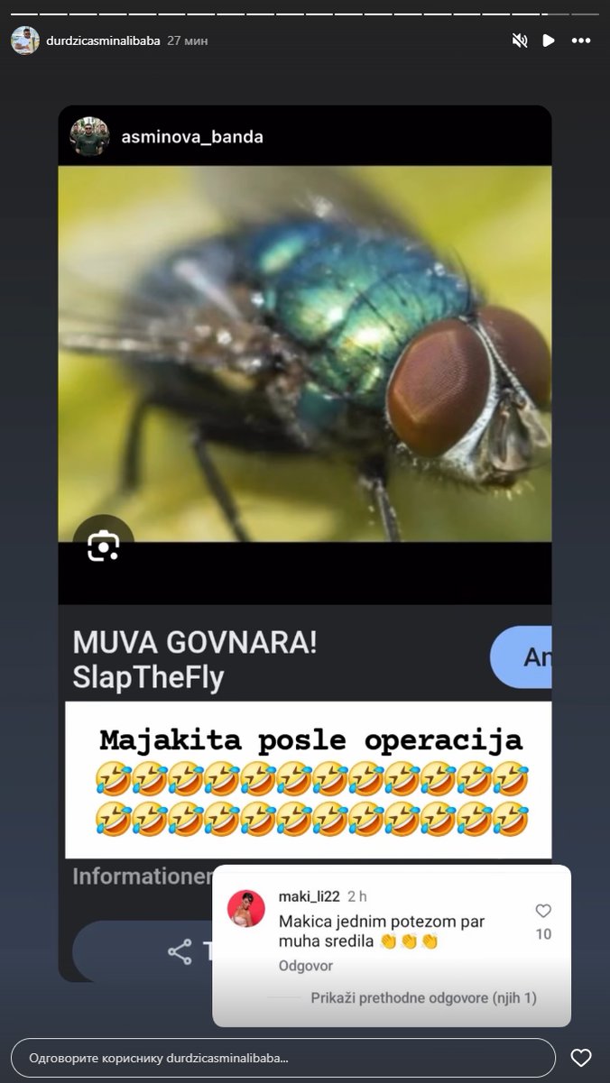 Takođe, ovde nije bio kraj, iako rat Alibabinih fanova traje već nekoliko dana unazad, oni su rešili, po svemu sudeći, da se ne zaustavljaju, te su tako sada objavili fotografiju muve, na kojoj piše "muva gov*ara", te su dodali: