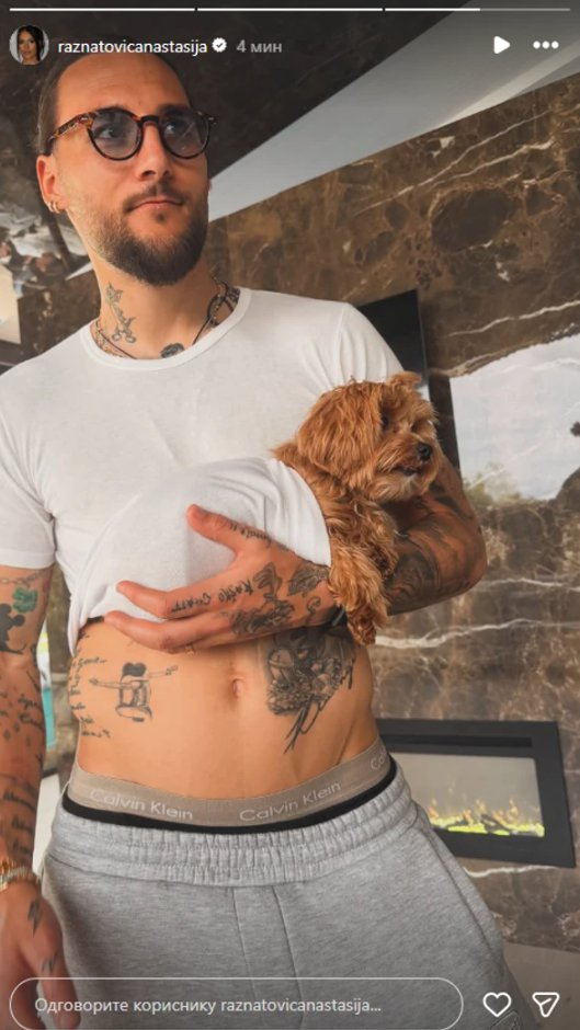 Anastasija je, naime, objavila fotografiju muža koji je podigao majicu kako bi "pokrio" štene. Gudelj je u jednoj ruci držao ljubimca, a u prvom planu su bile njegove brojne tetovaže po celom telu kao i mišići.