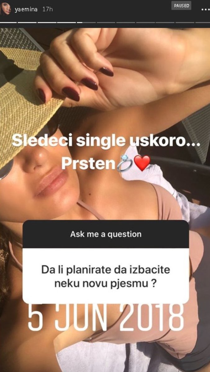 Emina je takođe obavestila svoje fanove i da uskoro stiže nova pesma koja će nositi simboličan naziv "Prsten".