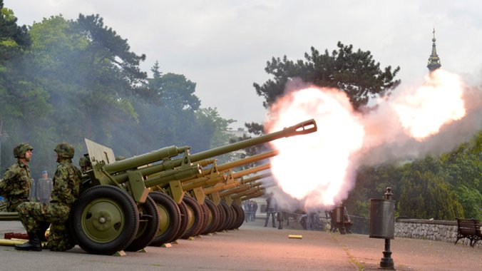 U 17 časova ispaljeno je 10 plotuna iz šest artiljerijskih oruđa sa Savske terase na Kalemegdanu.