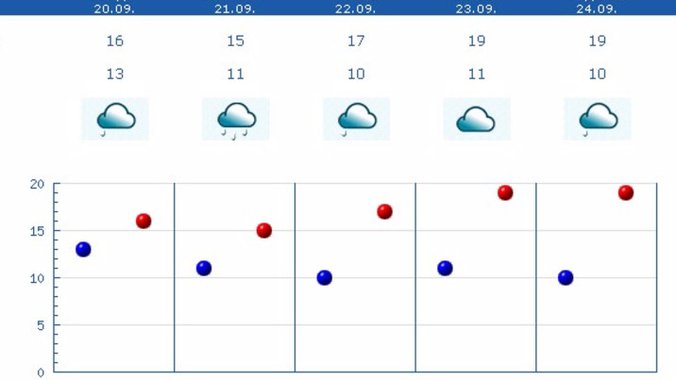 Prema prognozi vremena za narednih sedam dana, u četvrtak i petak oblačno sa kišom, hladno i vetrovito. U petak krajem dana prestanak padavina. Narednih dana toplije.