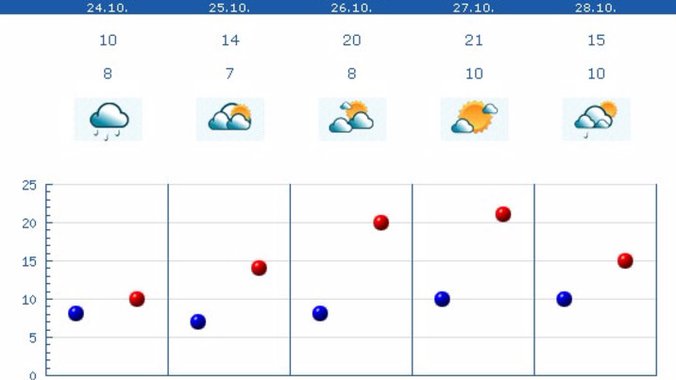 U Srbiji će u sredu biti hladno, uz delimično razvedravanje. U četvrtak i petak očekuje se suvo vreme uz porast temperature, zatim promenljivo i malo hladnije, mestimično sa slabom kišom, a na planinama sa snegom.