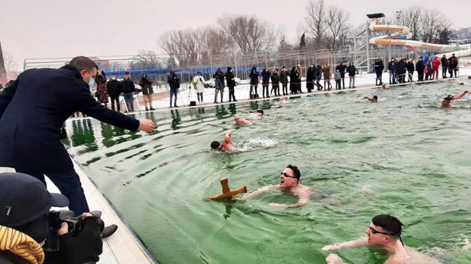 Bogojavljenska litija iz porte hrama kreće u 11 sati, a u 12 vernici ulaze u vodu i plivaju ka časnom krstu.
