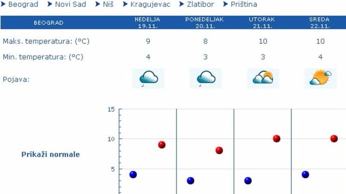 Od srede će u jutarnjim satima biti ponegde sa slabim mrazem i maglom, tokom dana uglavnom sunčano sa dnevnom temperaturom u postepenom porastu. Slično vreme u istom periodu predvidja se i u Beogradu.