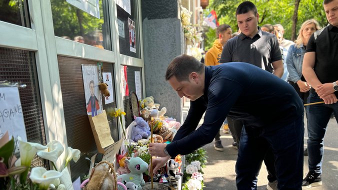 Veliki broj Beograđana od prekjuče čeka u dugim redovima ispred škole kako bi se i na ovaj način oprostili od nastradalih u masakru koji se dogodio u sredu, 3. maja, kada je Kosta Kecmanović (13) iz vatrenog oružja ubio osmoro učenika i čuvara škole.