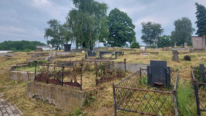Pojedinci sa tugom pokušavaju da očiste šiblje i korov sa polomljenih spomenika.