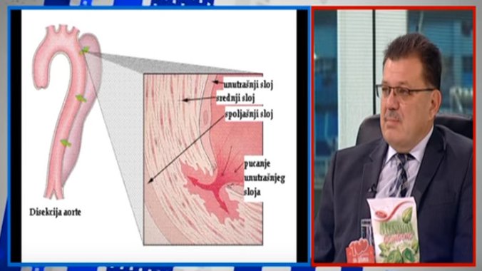 Profesor doktor Lazar Davidović, direktor Klinike za vaskularnu hirurgiju Kliničkog centra Srbije, rekao je da je disekcija aorte, jedno veoma teško oboljenje aorte koja započinje rascepom njenog unutrašnjeg sloja njenog zida, kroz koji krv prodire u zid aorte i dalje ga raslojava.