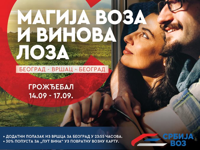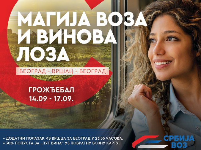 Iako jesen kuca na vrata, sezona uzbudljivih manifestacija širom naše zemlje je i dalje u punom jeku. Jedna od najstarijih - Dani berbe grožđa u Vršcu, poznatija kao “Grožđebal”, biće održana od 14. do 17. septembra, a kompanija „Srbija voz“ uvela je specijalne polaske vozova tokom trajanja ove popularne manifestacije.