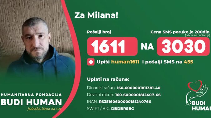Humanitarna fondacija BUDI HUMAN - Aleksandar Šapić prikuplja novčana sredstva kako bi Milan mogao da nastavi dalje lečenje.