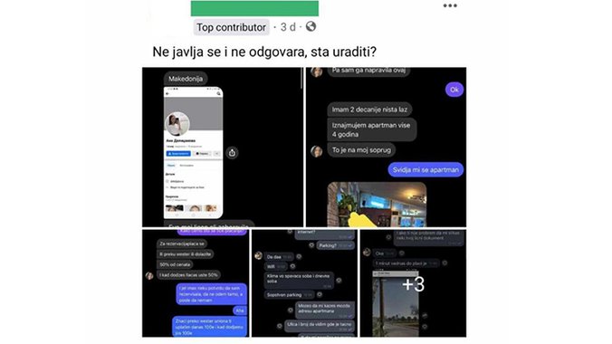 - Ako ipak imate veliku želju da preko tih grupa nađete smeštaj, vidite da to bude od nekog ko objavljuje smeštaj javno putem posta koji svi mogu videti, sa fotografijama, cenama, lokacijom, a ne od nekog ko vam šalje ponude u inboks. Vlasnici smeštaja u tim grupama se uglavnom znaju između sebe i ako se pojavi neko nov i sumnjiv vrlo brzo će ga primetiti, upozoriti članove i izbaciti ga iz grupe. Ova žena je ostala bez 100 evra, ali je nažalost bilo i onih koji su ostali bez 400-500€. Budite oprezni - zaključili su i dodali da se zahvaljuju kolegama iz drugih grupa koji dele ove informacije i umnogome doprinose da se ljudi zaštite od prevara.