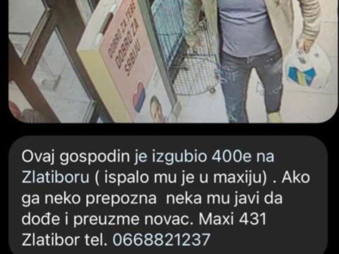 Muškarac iz Kraljeva u subotu je u jednoj prodavnici na Zlatiboru izgubio 400 evra, nakon čega se cela Srbija udružila da se on nađe kako bi mu se novac vratio, što je na kraju i urodilo plodom - piše Kurir.