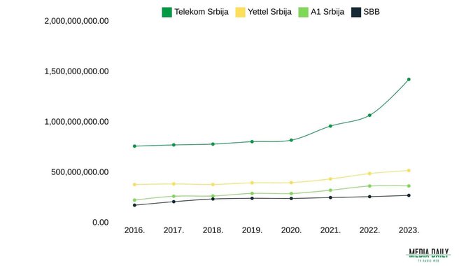 U današnjoj analizi, Medija dejli je objavio finansijske podatke Telekoma Srbija i ostalih operatera koji se odnose isključivo na tržište telekomunikacija u Srbiji, a narednih dana će za ceo region bivše Jugoslavije. Telekom Srbija na nivou Grupe u 2023. godini ima impresivne rezultate: ukupni prihodi veći od 2 milijarde evra, operativna dobit oko milijardu evra i neto dobit preko 400 miliona evra. Zbog toga se očekuje da je srpski nacionalni operater, treću godinu zaredom, ubedljivo najuspešnija kompanija na tržištima svih šest zemalja sa prostora eks-Ju i da je čak uvećao prednost u odnosu na drugoplasirani Hrvatski telekom.