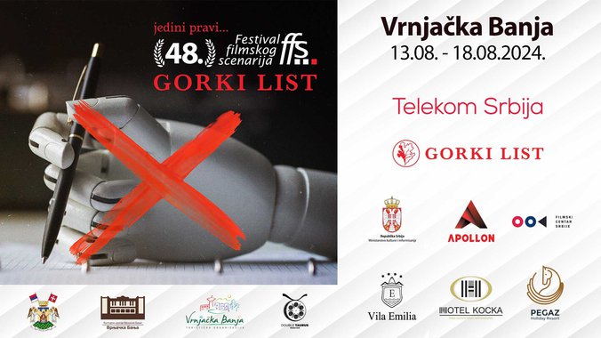 Jedini pravi 48. Festival Filmskog scenarija – Gorki list u Vrnjačkoj Banji, posvećen scenaristima i njihovom delu biće održan ove godine od 13. do 18. avgusta. Od pre nekoliko godina ova glamurozna manifestacija u čast idejnih tvoraca filmske produkcije u Srbiji ima kao najavu simpatične igrane skečeve uz učešće naših najpoznatijih glumaca. Sa ovogodišnjim sloganom festivala “AI STVARA ALI ČOVEK SANJA”, festival otvara temu o granicama između tehnologije i ljudske kreativnosti, istražujući kako se ove dve sfere međusobno prepliću i utiču na budućnost kinematografije. Upravo na ovu temu snimljen je promo video gde publika može da vidi zanimljiv nastavak priče u odnosu na skeč od predhodne godine.