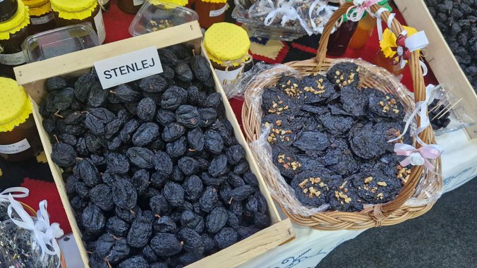 Na štandovima su izloženi rakija, pekmez, sušena šljiva i jedinstveni kolač od šljive, koji se nakon kuvanja može čuvati i pet godina.