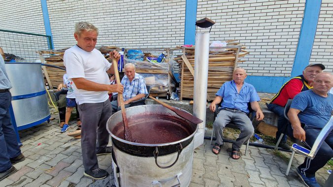 Ispred Sportske hale kuvao se pekmez. Saznali smo da se od 150 kilograma sveže šljive, dobije oko 60 kilograma pekmeza. Pored njih, u kazanu se pekla rakija od "požegače", a majstor za rakiju otkriva da je najbolje da ima 50 do 52 stepena.