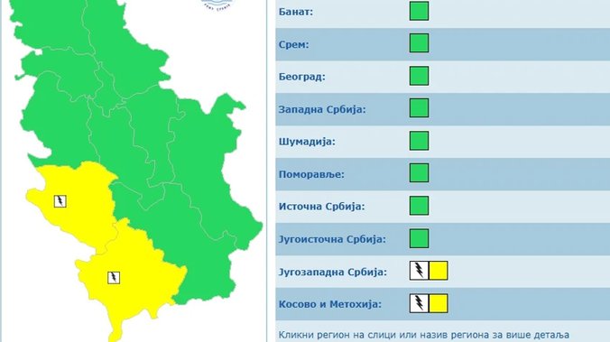 Danas će žuto upozorenje na grmljavinu važiti u jugozapadnoj Srbiji i na Kosovu i Metohiji.