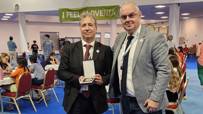 U znak zahvalnosti za podršku i saradnju, predsednik Šahovskog saveza Srbije, gospodin Andrija Jorgić, uručio je plakete ambasadoru Ivu Vojvodiću i predsednici Šahovskog saveza Slovenije, gospođi Nini Rob.
