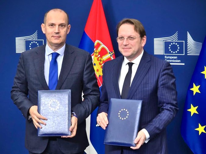 Komesar Varhelji je naglasio da mu potpisivanje sa Srbijom predstavlja izuzetno zadovoljstvo.