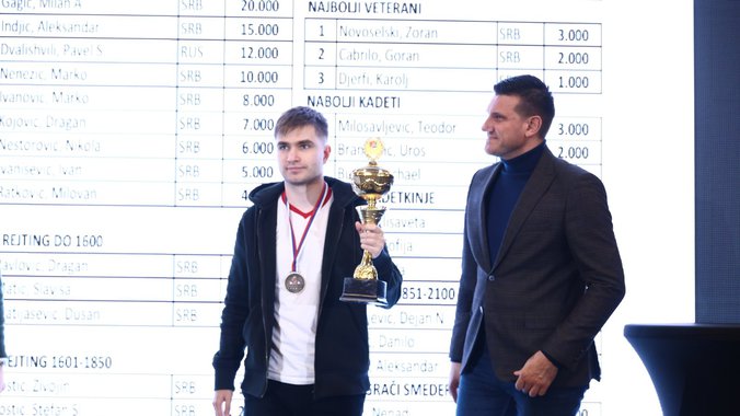 Turnir se igrao po švajcarskom sistemu sa devet kola, a zasluženu pobedu odneo je Aleksej Sarana. Drugo mesto pripalo je Ratković Miloju, dok je trećeplasirani Perunović Miloš. Pored redovnih nagrada, dodeljene su i specijalne nagrade i to za najbolju šahistkinju, veterana, kadeta i kadetkinju, kao i za najboljeg igrača po rejtingu i najboljeg igrača iz Smederevske Palanke.
