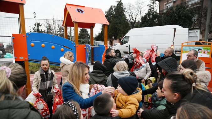 Na teritoriji Opštine Grocka, u 2026. godini, izgradićemo inkluzivna igrališta“, poručila je ministar za rad, zapošljavanje, boračka i socijalna pitanja Milica Đurđević Stamenkovski prilikom svečanog otvaranja igrališta izgrađenog kod OŠ „Aleksa Šantić“ u Kaluđerici, gde je deci podelila novogodišnje paketiće.