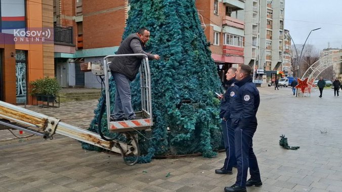 Prilikom postavljanja jelke, pripadnici Kosovske policije prišli su radnicima i zatražili dozvolu za postavljanje rasvete, koju je Opština Severna Mitrovica, kako kažu za Kosovo onlajn, ranije uredno dobila.