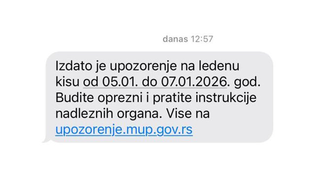 - Najintenzivnije padavine očekuju se u centralnom pojasu zemlјe (od zapadne i jugozapadne Srbije, preko Beograda, Šumadije, Pomoravlјa i Homolјa, dalјe ka istoku - Timočkoj i Negotinskoj Krajini) i to povremeno sa vlažnim snegom, pa se danas očekuje formiranje odnosno povećanje snežnog pokrivača visine od 10 do 20 centimetara, lokalno i 30 centimetara. Takođe, u istoj oblasti danas (04.01.2026. godine) u večernjim i noćnim satima, kao i početkom sledeće sedmice (od 05.01. do 07.01.2026. godine) očekuje se lokalna pojava ledene kiše, dok se dalјe povećanje snežnog pokrivača očekuje samo na severu i zapadu zemlјe - navodi se u upozorenju RHMZ.