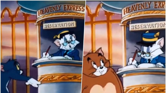 U epizodi “Heavenly Puss” Tom privremeno posećuje vrata raja nakon što je zadobio povredu tokom borbe s mišem Džerijem. Zlatne pokretne stepenice vode ga do vrata pred kojima mačke stoje u redu kako bi se ukrcale na voz – Heavenly Express, prenosi Avaz.