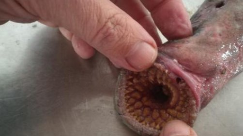 Ovaj parazitski paklar ima usta bez vilice - okrugla i široka, dok su zubi oštri i raspoređeni u mnogo kružnih redova.