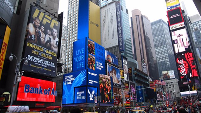 Četiri glavne američke televizijske mreže imaju sedište u Njujorku: Ej-Bi-Si, Si-Bi-Es, Foks i En-Bi-Si.