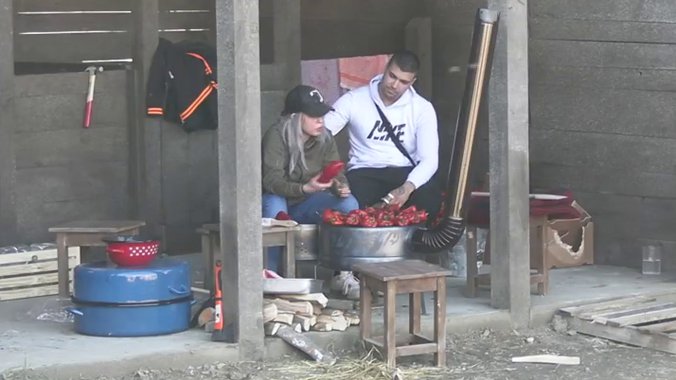 Dok je Aleksandra odlučila da pokaže kako se dobro snalazi u svim seoskim poslovima, u ovom slučaju je to pečenje paprika, Ognjen joj je sve vreme pravio društvo i nežno je grlio.
