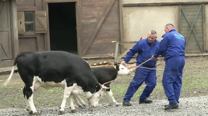 Nakon Prokinog pitanja, uveli su kravu Ružu i njeno tele, a Proka im je davao uputstva.