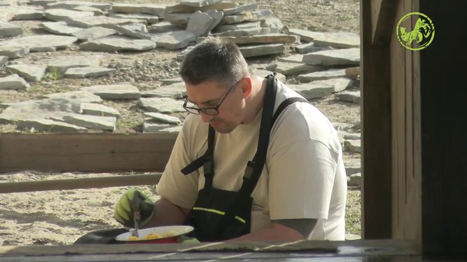Veselin i Kristijan doručkovali su napolju i to u prilično čudnim položajima. Kristijan je sedeo na stazi koju su farmeri radili na imanju, a Veselin je sedeo na drvima za ogrev.
