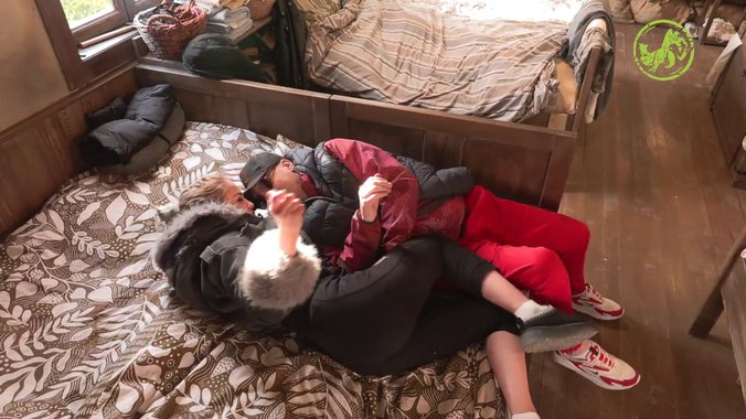 Njih dvoje su se potom pogurali na krevetu a onda su krenuli da se ljube, gde je Elena nakratko pokušala da ih prekine, ali bezuspešno.