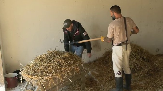 Nikola Lakić jutros se na sastanku prijavio da bude zadužen za kravu i tele. Lakić je sa Nikolom Jovanovićem Conjom počistio štalu i postavio novu slamu kako bi kravi Ruži i teletu bilo zdravo okruženje. Lakić se obratio Ruži, zapevao joj, a onda je stigao Peca Lazić pa komentarisao ambar.