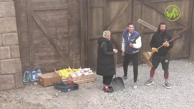 Nikola Lakić, Ena Petrović i Boža Džons jutros su se okupili oko namirnica koje su stigli na imanje, a onda krenuli da "prozivaju" farmere koje ih nazivaju lopovima.
