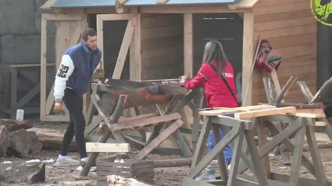 Dušica Topić i Boža Džons nakon što su izgladili odnose prionuli su na pripremanje drva za ogrev. Proka im je dao zadatak, a njih dvoje zajedničkim snagama trudili su se da ga ispune.